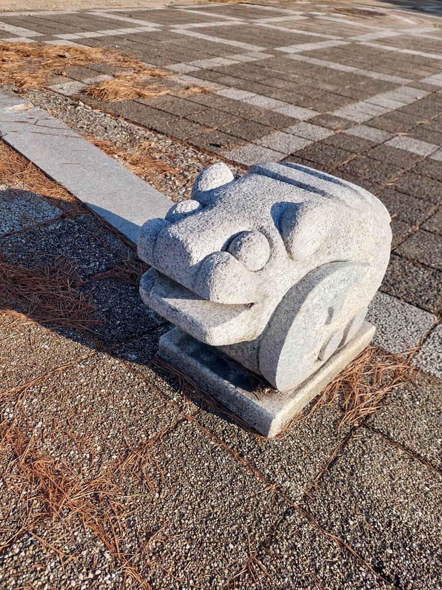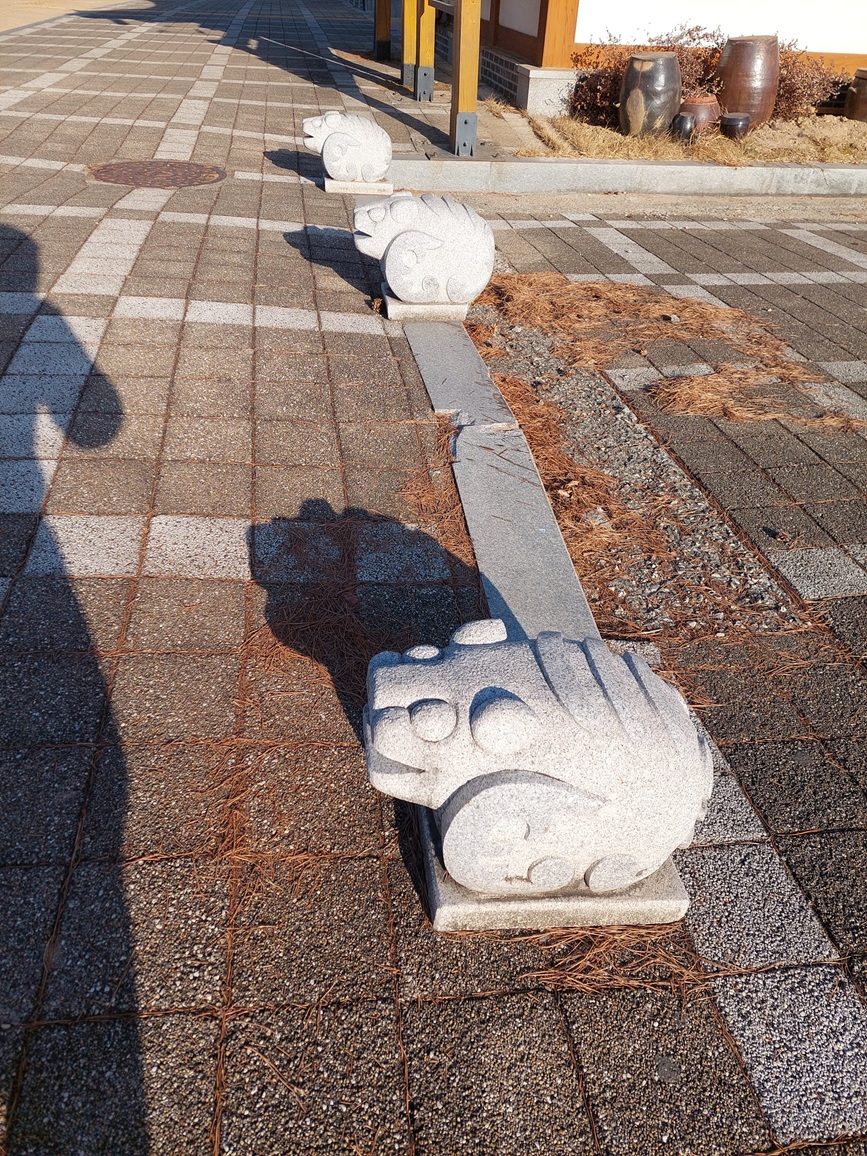 한옥마을에 이렇게 배치된 석상은 대체 무엇일까? 나중에 보겠지만 공주의 자랑, 무령왕릉을 지키던 진묘수를 귀엽게 형상화한 것일까? 진짜 귀여워서 사진 두 장을 찍어보았다.