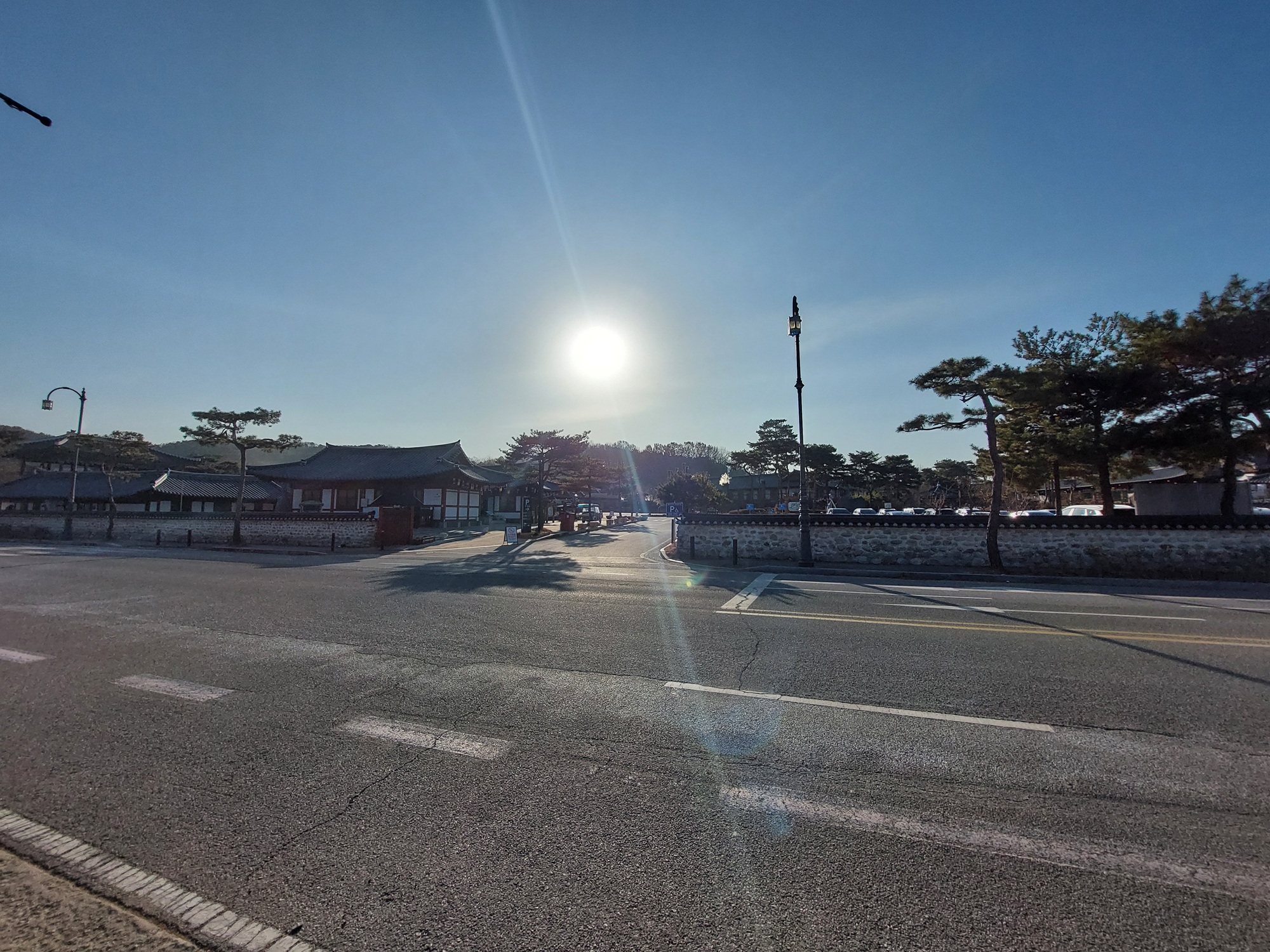 일단 아트센터 고마와 공주 한옥마을 사이를 걷다 보면, 남동쪽에서 뜬 해가 비추는 한옥마을 입구에 닿는다. 여기서 나는 길을 건너 안으로 들어가 보았다.