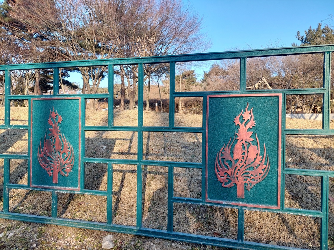무령왕릉과 왕릉원의 담장에는 무령왕릉에서 출토된 금관 장식 문양이 새겨져 있다.